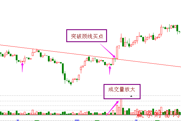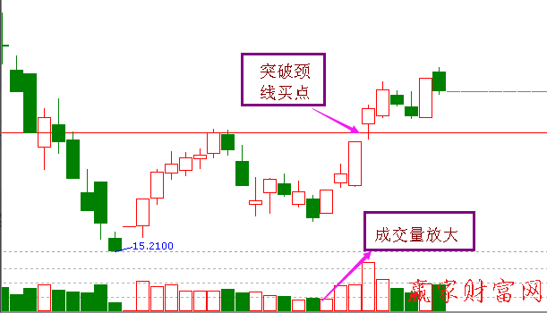 當(dāng)大盤和個(gè)股經(jīng)歷了長(zhǎng)時(shí)間的下跌之后,出現(xiàn)企穩(wěn)的跡象,在K線圖形上會(huì)形成雙重底的形態(tài),而右側(cè)出現(xiàn)成交量放大,這個(gè)時(shí)候一旦突破頸線位置,就是我們大膽抄底的時(shí)候。