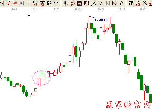 當(dāng)個(gè)股在經(jīng)歷長(zhǎng)期下調(diào)之后,在回升的之后放量出現(xiàn)一根大陽(yáng)線,之后連續(xù)出現(xiàn)三個(gè)不斷向上的小陽(yáng)線或是十字星,這表示后市的上漲可能很大,可以立即買進(jìn)。