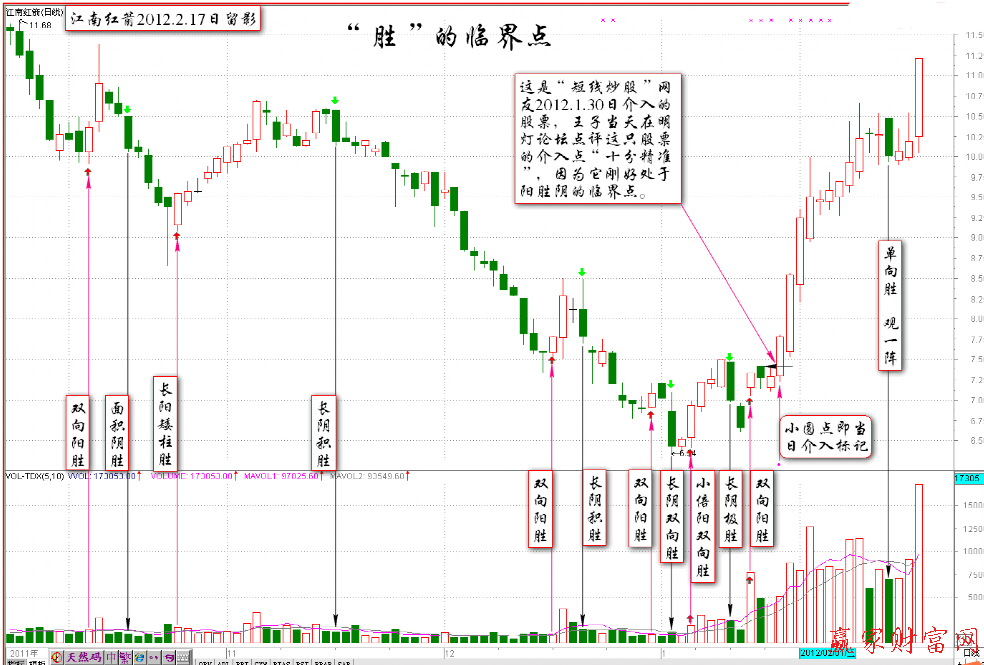 三: 在這里“勝”,是“十二字”的核心。關(guān)鍵在于“勝”之后“攻擊臨界點”的把握。有的“臨界點”有很多很多,而有的卻很少。我們一塊來看看下面的這只股票,挺有意思的,它的“臨界點”非常少。請看下圖: