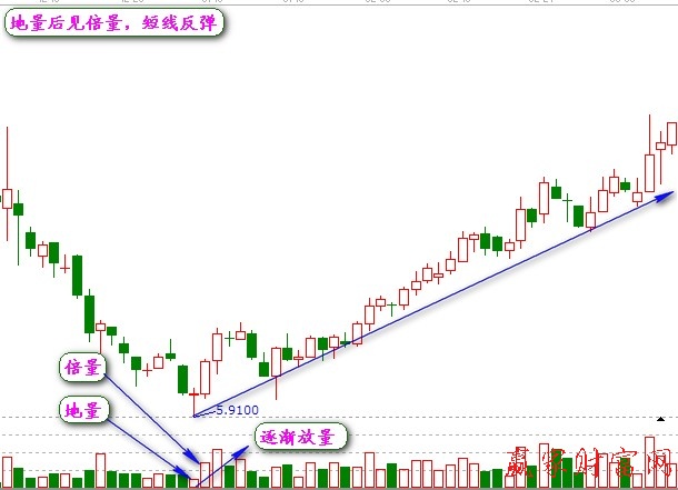倍量(天量)的出現(xiàn)將地量得到確認(rèn),代表著階段性調(diào)整的結(jié)束,股市行情將進(jìn)入短線反彈或者趨勢(shì)反轉(zhuǎn)行情。