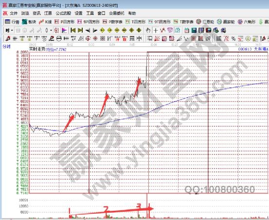 判斷量能承接是提高操作成功率,為輔助性指標。通過案例大東海A(000613)我們進行具體的實戰(zhàn)應用。如下圖,分時圖中顯示該股略微低開后震蕩回落,早盤10點展開一波帶量反彈,隨后窄幅震蕩,10點44分第二次帶量反彈,休整平臺高于第一波反彈高點,11點18分大單秒拉3%,圖形中看出,拉升力度、空間越來越強,休整時間越來越短有加速之勢,一切事跡成熟后,大單封板。
