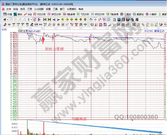 再來一張開板量能回補不足案例。聯絡互動002280,開盤漲停,早備用9:45分開板,10點10分鐘有一次回封動作,從量能上看回封強度不足,隨后多次嘗試反攻回封動作,結合量能承接看,力度越來越弱,動量降低。無新的動能承接,導致價格走低。