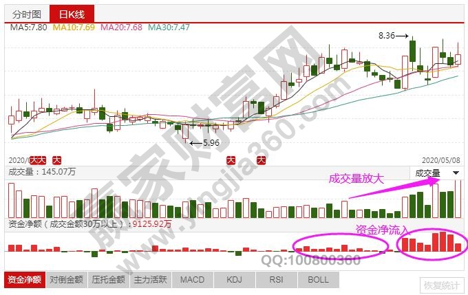 第一,研判主力資金是流入還是流出!股價(jià)上漲往往伴隨著成交量的放大,這一定是有資金流入了。但是,只是成交量放大,不代表就是有資金進(jìn)入了,也可能是資金流出,尤其是股價(jià)處于頂部階段。在實(shí)際應(yīng)用中,所關(guān)注的股票放量拉升或者放量下跌,投資者可以結(jié)合L2數(shù)據(jù)及主力資金分析手段,來進(jìn)一步研判資金是流入還是流出。對(duì)照大名城的走勢圖,成交量逐步放大的同時(shí)顯示資金流入,對(duì)應(yīng)股價(jià)同步攀升,逢低買入均有獲利機(jī)會(huì)。