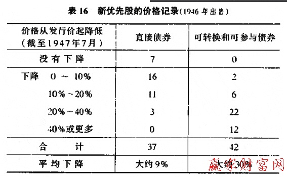 然而,我們確實知道,在1945年至1946年流通的典型的可轉(zhuǎn)換債券已被證明是不誘人的。事實上,整個該組的市場行為已被證明比那些不具備可轉(zhuǎn)換特征的優(yōu)先股更令人失望。表16將刻畫出這種情景。
