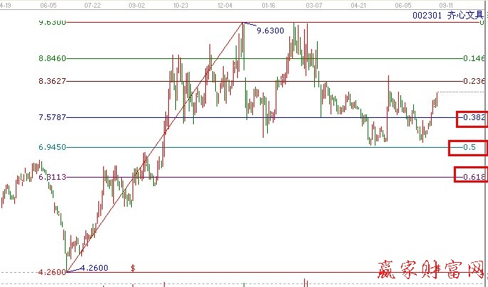 6、對(duì)于操作強(qiáng)勢(shì)股,還可以依據(jù)黃金分割來買入。在一只股票的上漲幅度達(dá)到25%之上的時(shí)候,我們可將其當(dāng)做強(qiáng)勢(shì)股,加入自選股,當(dāng)之后回調(diào)到第一波升幅的0.618、0.5、0.382的位置的黃金分割買點(diǎn)的時(shí)候買入。比如群興玩具(002301)