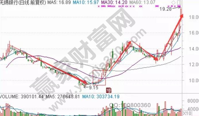 這個以無錫銀行的走勢來進行分析。下圖中該股就是典型的右小角穩(wěn)健企穩(wěn)突破性的走勢,在市場化總這樣的形態(tài)是比比皆是的,但是投資者對于啟動的把握是非常關(guān)鍵的。