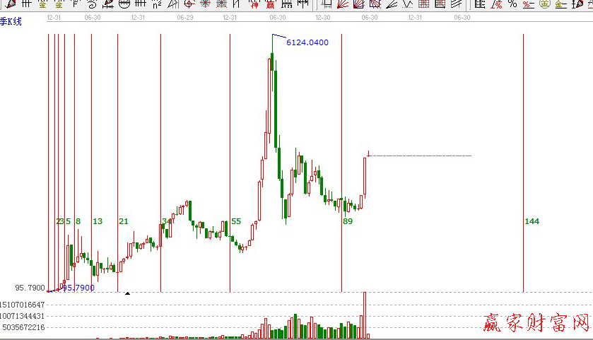 費(fèi)氏時間循環(huán)線作圖,選點(diǎn)從上交所1900年12月19日開始選擇季線。如下圖: