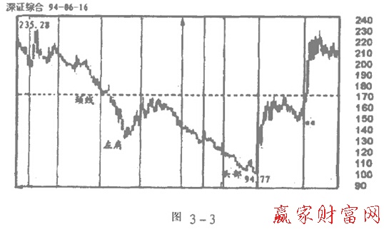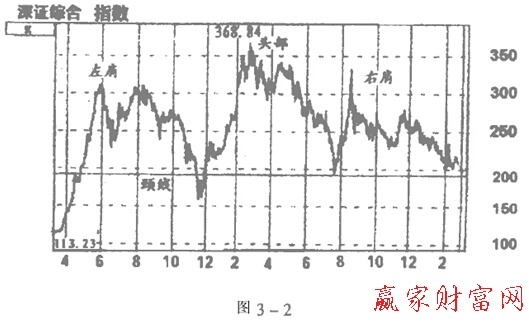 頭肩式殺傷力極大,上圖是深圳幾年波動(dòng)中形成的頭肩圖,它使起初靠原始股起家的大戶被無情消滅。