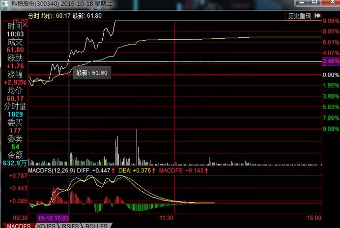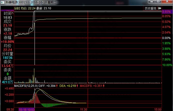 通過上面的圖形我們可以知道,科恒股份在龍頭老大封上漲停的時(shí)候,它在這個(gè)時(shí)候才在兩點(diǎn)多左右,那么有十分鐘的時(shí)間是可以在四個(gè)點(diǎn)兒上下買入,并且還有十分鐘的時(shí)間是可以在五個(gè)點(diǎn)左右買入,總體給你買進(jìn)的時(shí)間長達(dá)了二十分鐘,那么如果你參與了交易。那么在后續(xù)封漲停板后,當(dāng)天就坐收了五個(gè)點(diǎn)左右的浮贏,是一件非常愉快的事情。