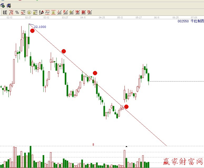 下面我們結(jié)合例子講解下趨勢(shì)線在實(shí)戰(zhàn)中的應(yīng)用: