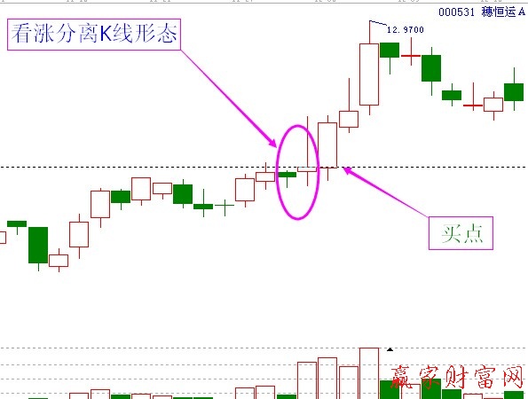 如下圖的看漲分離K線形態(tài)展示: