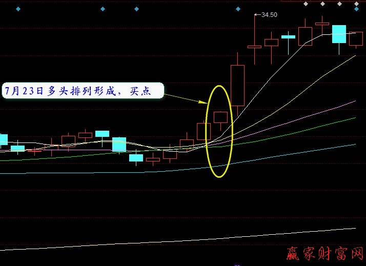 均線買入方法介紹了很多,筆者今天介紹一個(gè)常見的買入方法,當(dāng)均線出現(xiàn)多頭排列的首日即可買入。下面詳細(xì)分析。