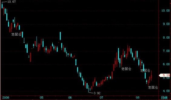 3、為了判斷主力是否有出貨的量能,必須參考成交量。如果在上沖過程中量能放的過大過快,就要當(dāng)心主力是否在出貨,如果量能處于溫和狀態(tài),那么,“老鼠倉”形的K線走勢的最后一個技術(shù)條件也成立了。