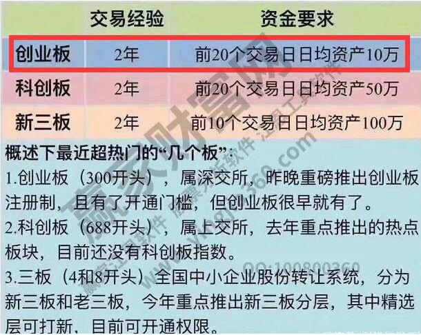 創(chuàng)業(yè)板的公司一般具有以下的特點,分別是成立時間短,資本規(guī)模小,處于創(chuàng)業(yè)發(fā)展階段。相對于成立時間長、資金規(guī)模大的公司,風(fēng)險更高,不確定因素也是比較多的。由于創(chuàng)業(yè)板投資風(fēng)險較高,證監(jiān)會于2020年4月28日正式實施創(chuàng)業(yè)板新規(guī),要求個人投資者具備兩年a股交易經(jīng)驗,前20個交易日日均資產(chǎn)不得低于10萬元。缺一不可,缺一個條件就不會開板。