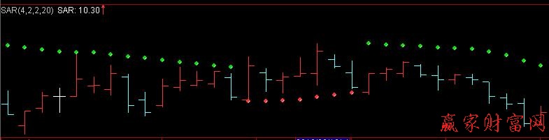 買賣的進(jìn)出時(shí)機(jī)是價(jià)位穿過SAR時(shí),也就是向下跌破SAR便賣出,向上越過SAR就買進(jìn)。