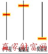 6) 在一個升勢當(dāng)中,這種K線圖明顯增加了逆轉(zhuǎn)方向的可能性。但是在接下來的第二根K線必須低開且收盤價比它低才能夠肯定了投資者的方向,如果第三根K線能低過第二根K線的下影線他的跌勢更為迅猛。