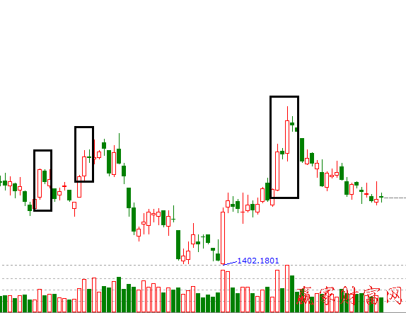 該K線形態(tài)還包括有兩種具體形態(tài),一種是“十字胎”K線形態(tài),就是后一根短K線是十字星;另外一種是嚴(yán)格意義上的K線形態(tài),就是后一根短K線不僅被前一根K線的最高價和最低價所包容,還被前一根K線的開盤價和收盤價包容。