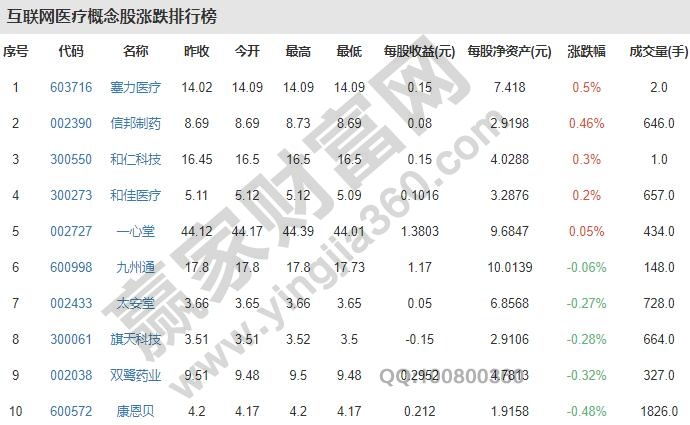 除此之外,互聯(lián)網(wǎng)醫(yī)療概念股還包括貴州百靈002424、潤(rùn)達(dá)醫(yī)療603108、海南海藥000566、翰宇藥業(yè)300199、國(guó)藥一致000028、一心堂002727、康美藥業(yè)600518等。
