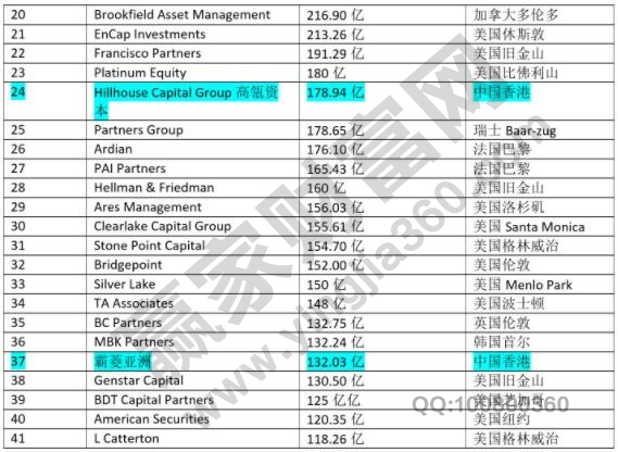 我們從PE在全球的影響力來(lái)看,北美尤其是美國(guó)是全球PE機(jī)構(gòu)的主力力量,PEI 300榜單中有201個(gè)美國(guó)PE機(jī)構(gòu),在過(guò)年的五年中總?cè)谫Y額度達(dá)到了1.4萬(wàn)億美元,其他地區(qū):1家中東北非PE機(jī)構(gòu),融資20億美元;1家拉丁美洲PE機(jī)構(gòu),融資30億美元;47家亞洲PE機(jī)構(gòu),融資1850億元;50家歐洲PE機(jī)構(gòu),融資3540億美元。