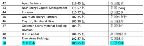 有27家本土PE機(jī)構(gòu)躋身去求TOP300榜單,其中太盟資本、霸菱亞洲、高瓴資本進(jìn)入了前五十名,表現(xiàn)亮眼,這三家機(jī)構(gòu)在過(guò)去五年當(dāng)中的融資額度達(dá)到了100.55億、132.03億、178.94億美元;除此之外還有兩個(gè)新創(chuàng)基金第一次進(jìn)入這個(gè)榜單,分別是大鉦資本、德弘資本,他們2019年融資分別是20億美元和25億美元,在過(guò)年的五年中,上榜的27家中國(guó)PE機(jī)構(gòu)融資總額是1190億美元。