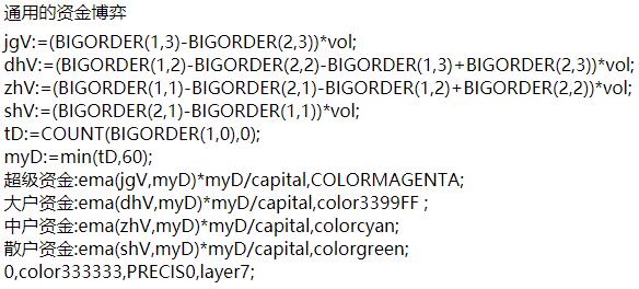 資金博弈主要就是上述所說的四根線,是根據(jù)散戶、中戶、大戶、超級大戶四類股票成交量和流通盤作比較得到的各類資金的控盤力度,通過這個指標,我們就可以看出炒作這只股票的人都是什么人?是主力多,還是散戶多?它最大的特點是四根指標線的數(shù)值相加是零,因為買入量和賣出量一樣。