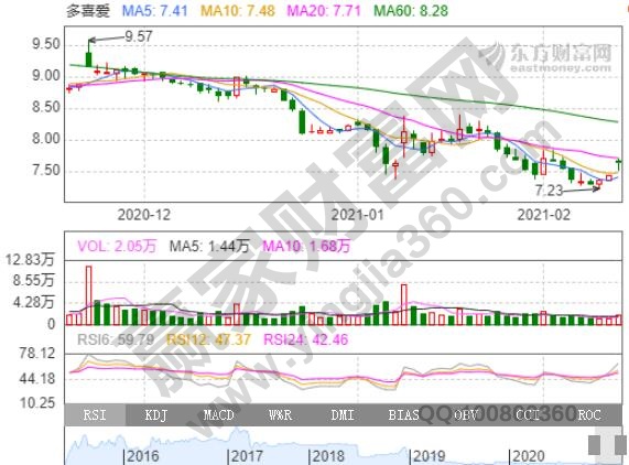 多喜愛(ài)股票代碼是002761,目前股票價(jià)格是7.64,今日最高價(jià)是7.71,最低價(jià)是7.51,總市值是82.61億。