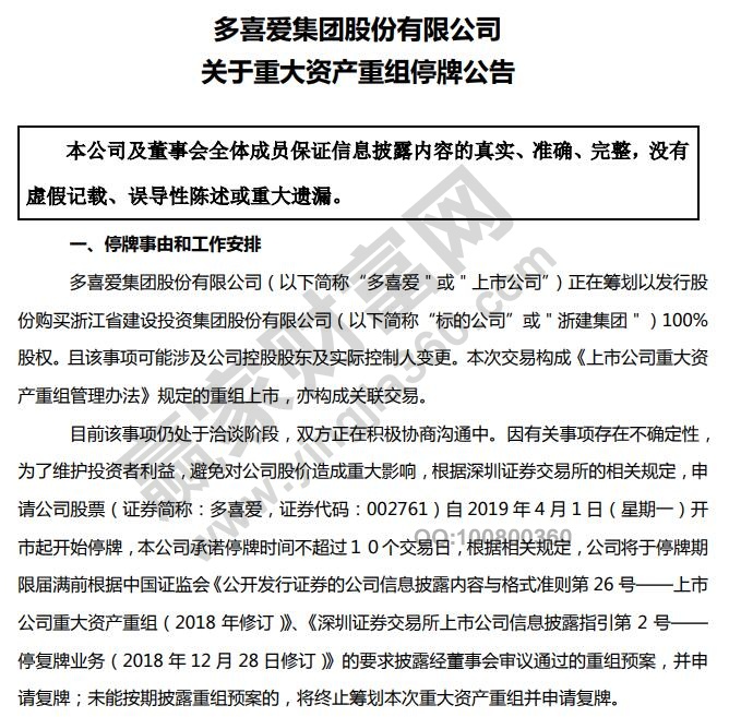 多喜愛(ài)集團(tuán)股份有限公司正在籌劃以發(fā)行股份購(gòu)買浙江省建設(shè)投資集團(tuán)股份有限公司100%股權(quán),該事項(xiàng)可能涉及公司控股股東及實(shí)際控制人變更。