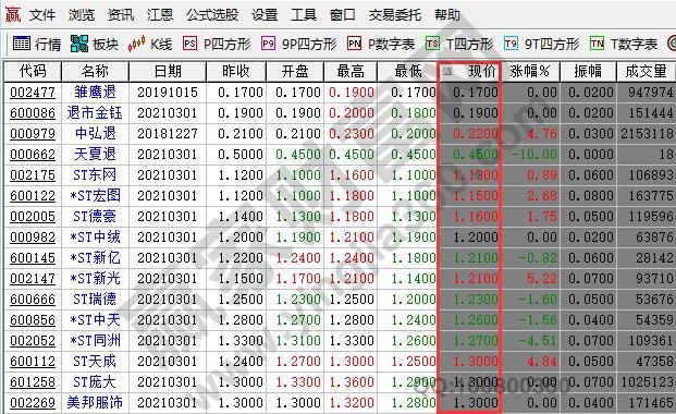 一般我們可以通過行情軟件來找,首先需要進(jìn)入漲跌幅排名,點(diǎn)擊“現(xiàn)價(jià)”,使它的價(jià)格變成從小到大排列,排在前面的就是低價(jià)股。
