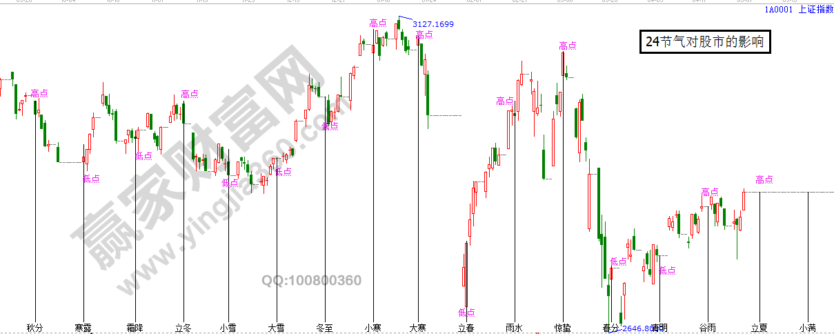 那么,自然法則真的在無形中影響著股市嗎?來看一張上證指數(shù)的24節(jié)氣分析圖,圖中直觀顯示,每到節(jié)氣窗口市場(chǎng)都伴隨著頂部或者底部信號(hào),按照節(jié)氣買賣可以有效的踏準(zhǔn)市場(chǎng)的節(jié)奏。而我們都知道24節(jié)氣是上古先民,通過觀察天體運(yùn)行總結(jié)出的自然節(jié)律變化,用來指導(dǎo)農(nóng)耕生產(chǎn)。但,自然節(jié)律同時(shí)也影響著人類的衣食住行,而股市由人組成,那么,自然法則也就一定在對(duì)股市產(chǎn)生作用。