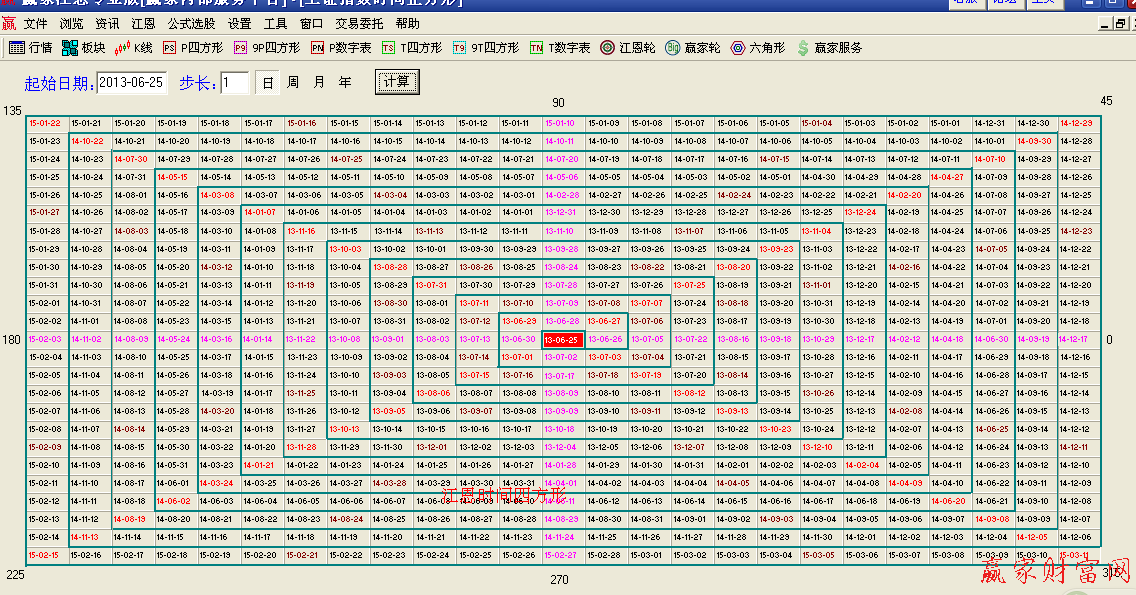 一. 時間循環(huán)法則:時間循環(huán)法則是江恩理論中最偉大的發(fā)明之一,江恩是第一個把時間引入到金融投資市場應用的人。江恩認為時間在金融投資市場中至關重要,到目前為止,能真正在金融投資市場中把時間應用把握好的人也為數(shù)甚少。江恩時間四方形 和江恩價格四方形的設計原理和使用方法完全一致。