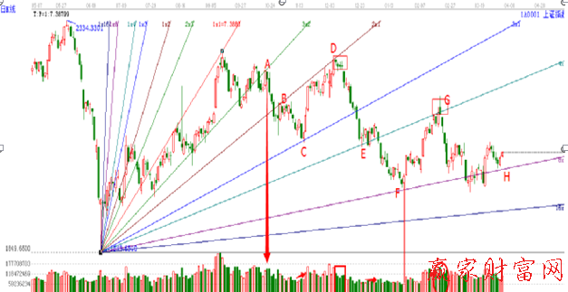 江恩提示,當市場到達重要的支撐或壓力位時,去參考成交量的形態(tài),以確認支撐或阻力的有效性,通過分析成交量見頂或見底的表現(xiàn)形態(tài),對于市場轉勢機會的把握便會增加很多,因為量能和價格是不可分割的,脫離成交量的價格分析也是沒有意義的。