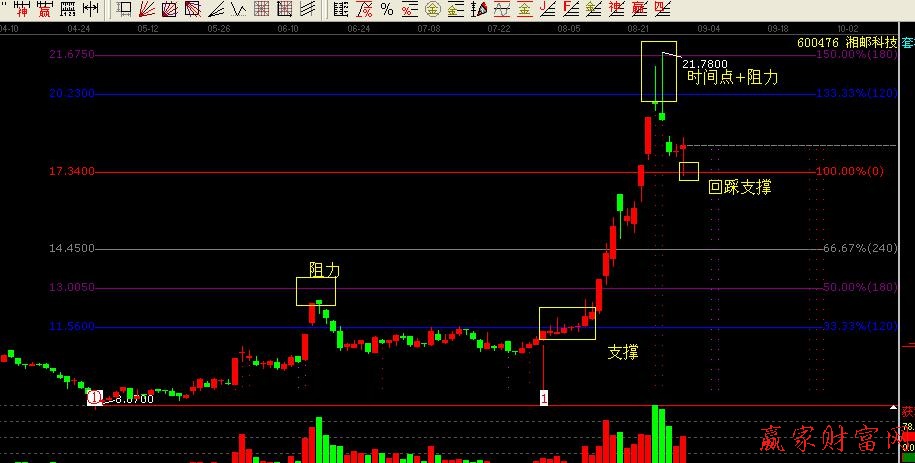 下面通過600476這只股來展示該股時間點以及價格支撐阻力。