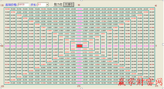 我們以利亞德歷史上低點(diǎn)6.6133為起點(diǎn),首先在這天的k線上點(diǎn)擊鼠標(biāo)左鍵,出現(xiàn)小黑色三角,表示選點(diǎn)已選好(在選點(diǎn)時(shí),不是必須選擇此點(diǎn),可根據(jù)自己經(jīng)驗(yàn)選擇點(diǎn)位)。之后點(diǎn)擊工具圖標(biāo),圖形就做出來(lái)了。步長(zhǎng)我們?cè)O(shè)置為0.1,點(diǎn)擊阻力位或支撐位就會(huì)得到我們所需要支撐位或阻力位。如下圖:
