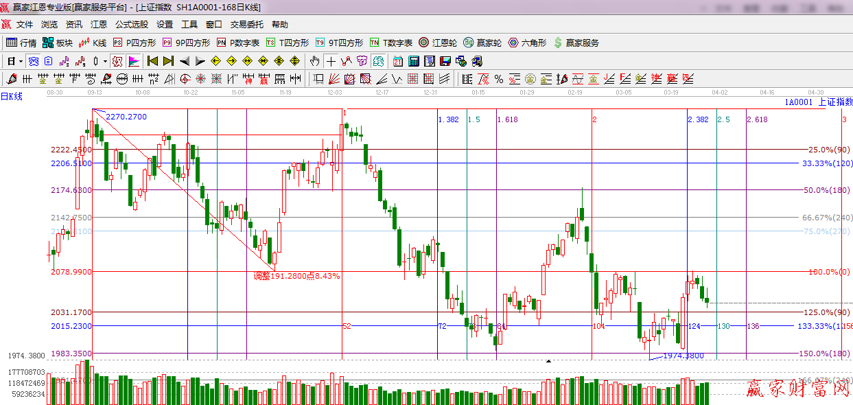 ★依據(jù)贏家江恩系統(tǒng)波段百分比提示:指數(shù)如期回踩江恩90度支撐,90度價格2031點(diǎn),周一依然重點(diǎn)留意此位置,上方強(qiáng)阻力2078點(diǎn)。