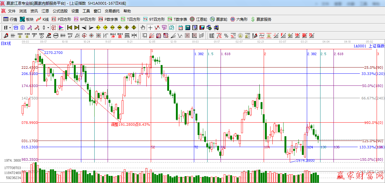 ☆依據(jù)贏家江恩系統(tǒng)黃金時間周期線提示:明日是四月一日,是前期提到的時間之窗,密切留意盤面變化。