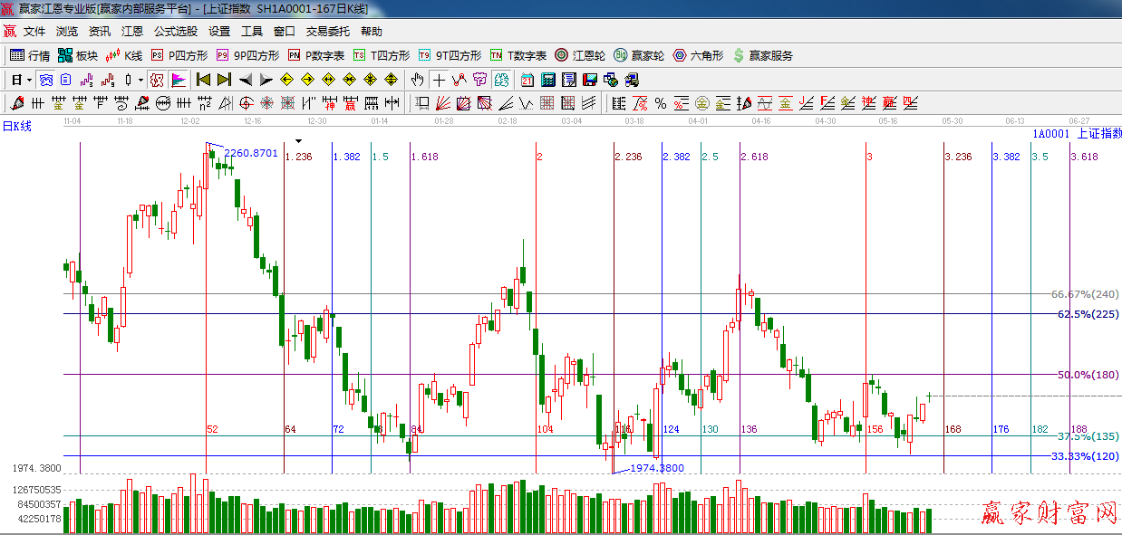 ☆依據(jù)贏家江恩系統(tǒng)波段百分比提示:下方支撐江恩135度2007點,上方阻力生命線2048點以及江恩180度位置2060附近。