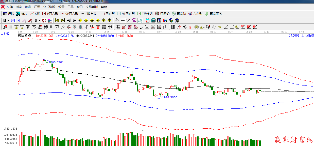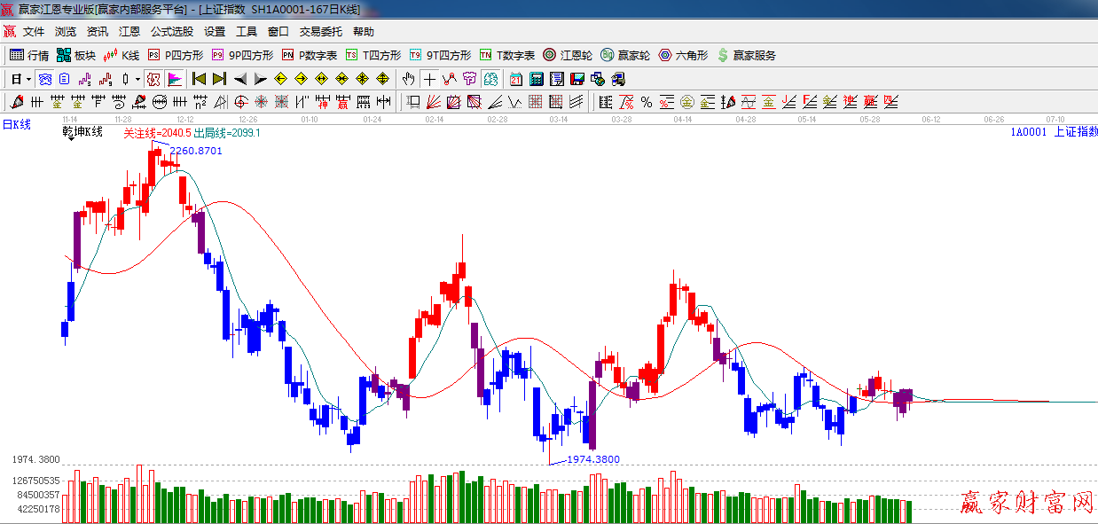 ☆依據(jù)贏家江恩系統(tǒng)極反通道提示:生命線之下,弱勢區(qū)域,短期阻力位生命線2050點附近,