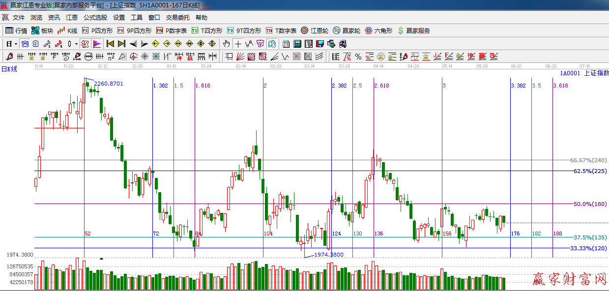 江恩看盤綜述:依據(jù)贏家江恩技術工具分析得出:上證指數(shù)依然處于生命線下方弱勢整理,量能進一步萎縮,本周ipo可能將要發(fā)行,以 及世界杯魔咒,給市場造成很大壓力,所以短期謹慎為,預計下周一指數(shù)將弱勢整理,操作上,倉位保持3成左右。