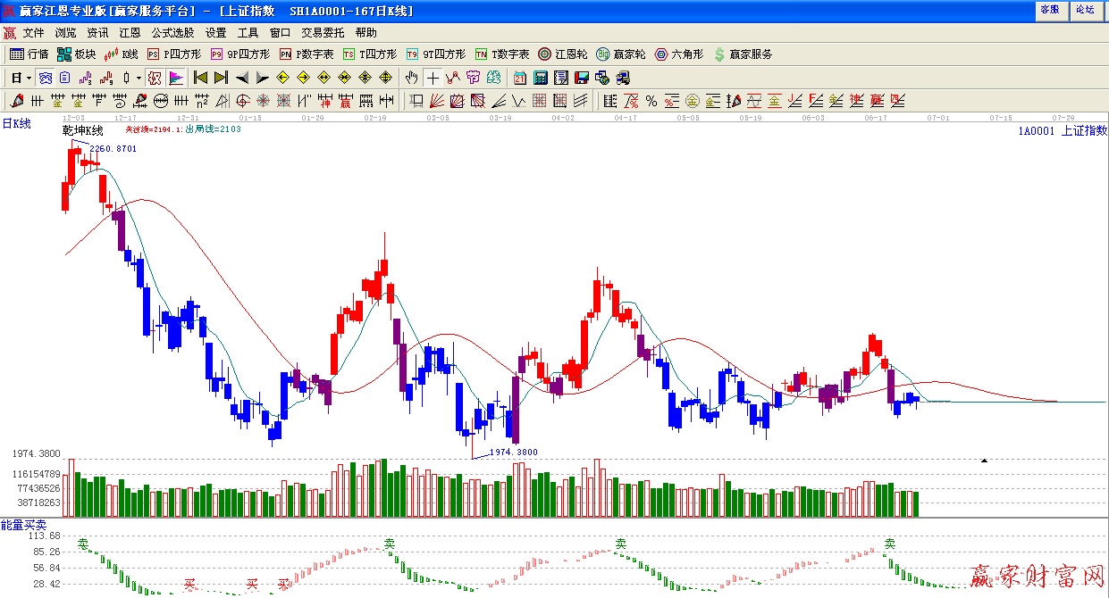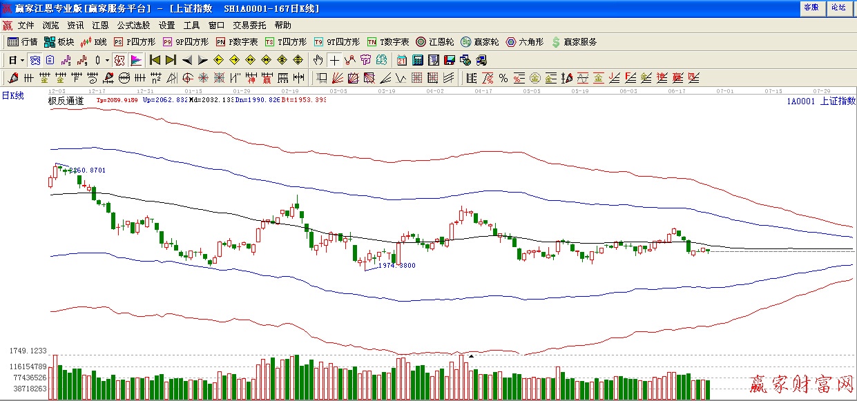 ☆依據(jù)贏家江恩系統(tǒng)極反通道提示:依然生命線之下弱勢整理,生命線阻力2040點(diǎn),短期趨勢空。