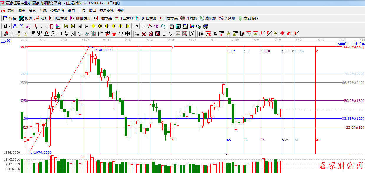 ☆依據(jù)贏家江恩系統(tǒng)黃金時間周期線提示:時間窗口為7月11日,14日,下周關(guān)注17號。
