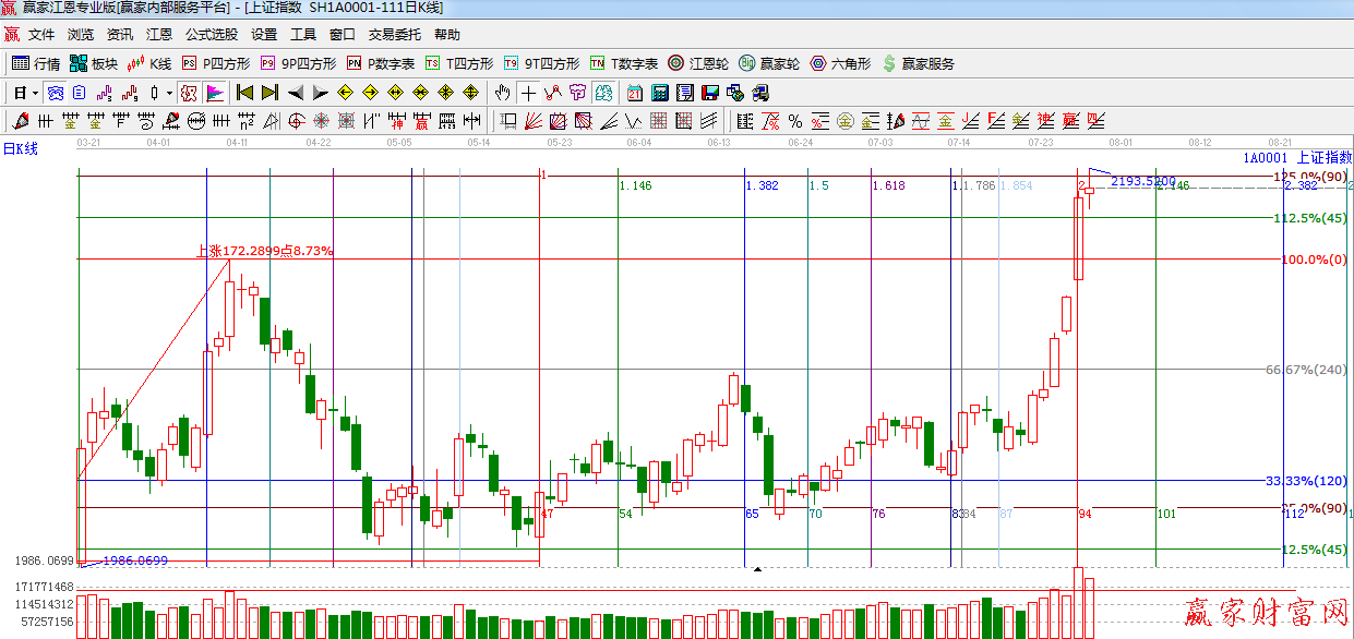☆依據(jù)贏家江恩系統(tǒng)黃金時間周期線提示:7月28日是前期提到的時間窗口,短期下一時間窗口是8月06日