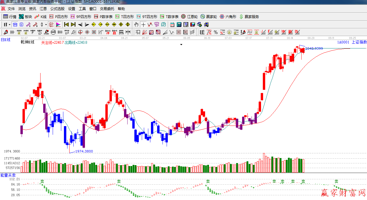 ☆依據(jù)贏家江恩系統(tǒng)能量買賣提示:處于高位超買位置,多空轉(zhuǎn)換節(jié)點處,綠色柱子加長,短期謹慎。