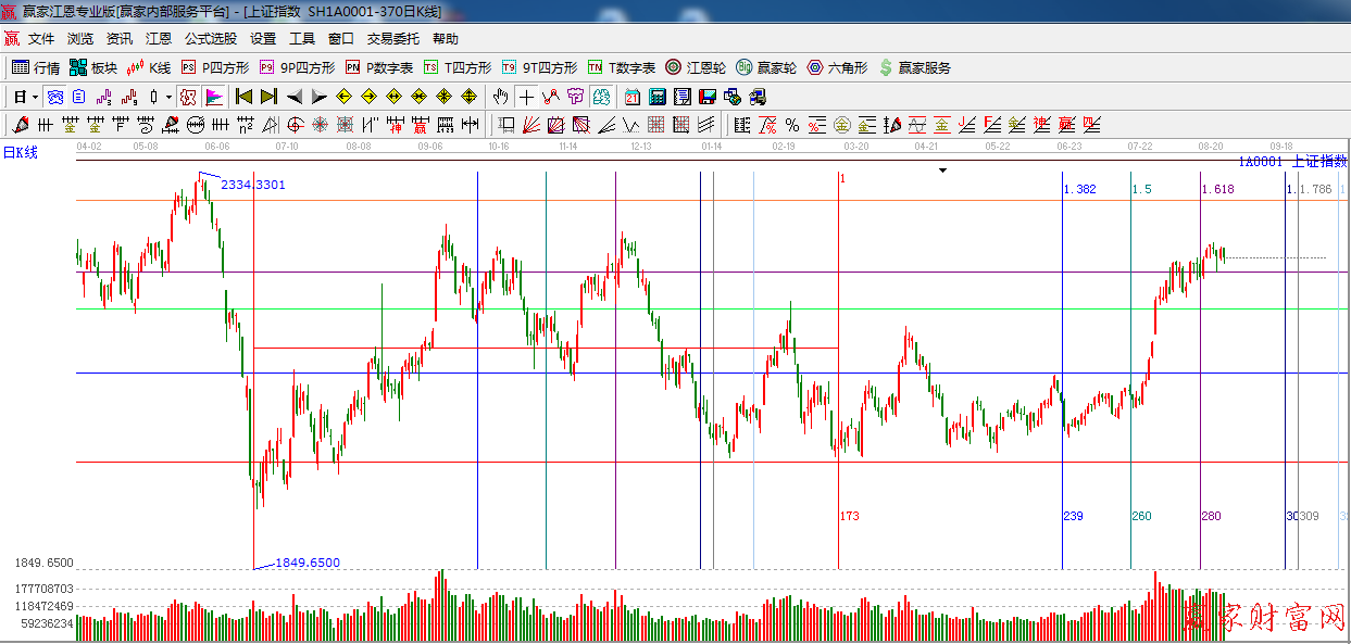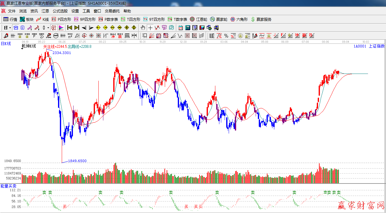 ★依據(jù)贏家江恩系統(tǒng)波段百分比提示:破位180度支撐線2232點(diǎn),下方支撐江恩120度是2204點(diǎn),六角形90度角度線支撐2210一線。