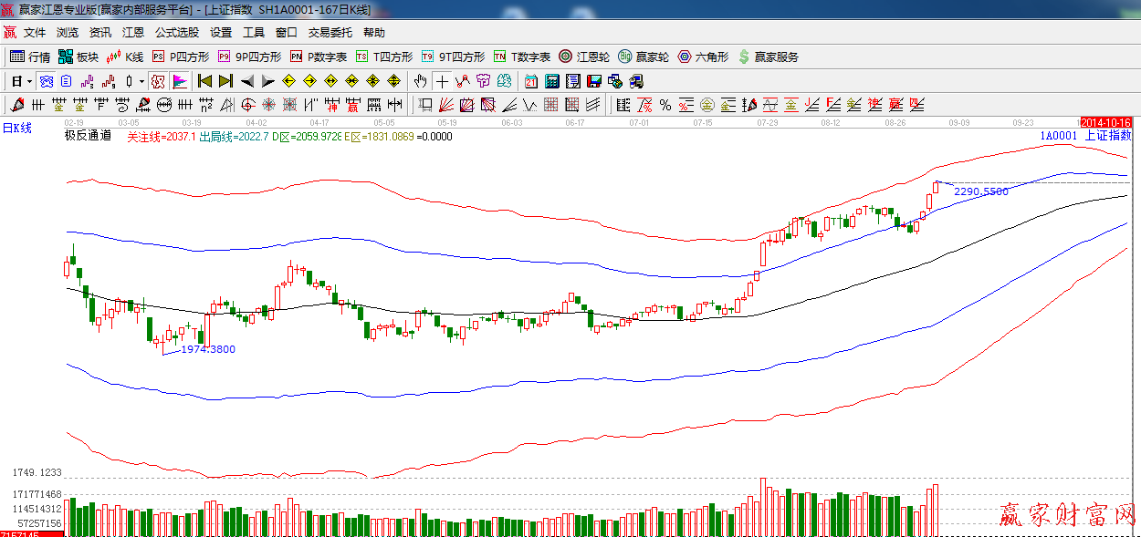極反通道提示:繼續(xù)放量上行,整體趨勢(shì)看多,上方外軌線阻力2318點(diǎn)附近。