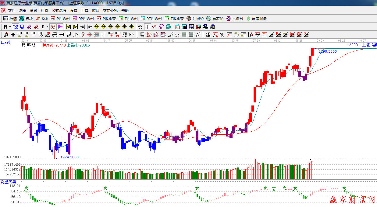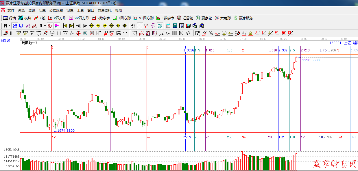 江恩看盤綜述:依據(jù)贏家江恩技術(shù)工具分析得出:周三市場(chǎng)在權(quán)重板塊配合下,繼續(xù)刷新新高,出現(xiàn)了“四連陽(yáng)”逼空走勢(shì),上方六角形阻力2300點(diǎn)附近,時(shí)間提示下一窗口是9月5日,預(yù)計(jì)今日沖高震蕩為主,后期仍需關(guān)注量?jī)r(jià)配合情況,一旦市場(chǎng)放量滯漲,則需引起投資者格外關(guān)注。