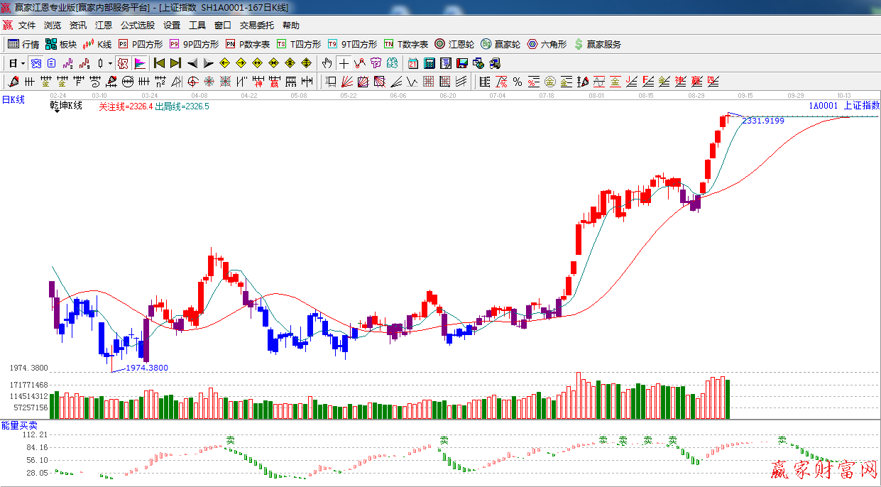 ★依據(jù)贏家江恩系統(tǒng)乾坤K線提示:k線由紫色轉(zhuǎn)入紅色k線,處于紅色安全可操作區(qū)域,看多。
