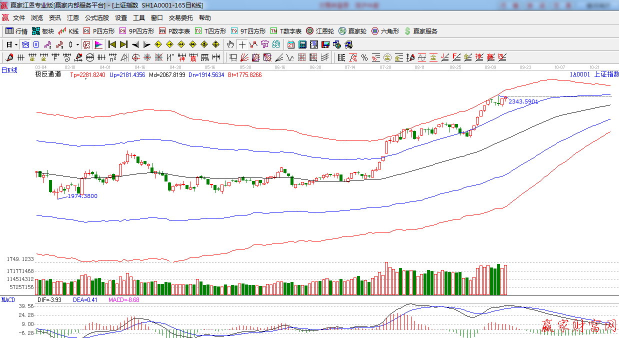 極反通道提示:外軌線之下高位震蕩,小陽(yáng)線報(bào)收,謹(jǐn)慎看多。