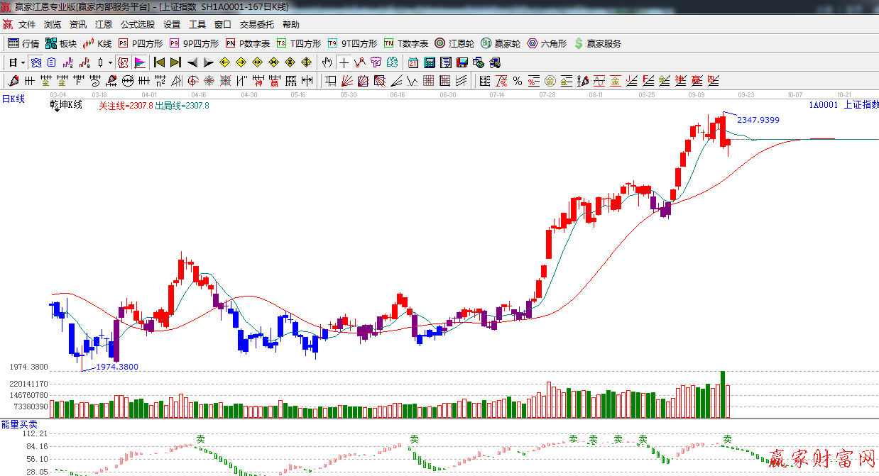 江恩看盤綜述:依據(jù)贏家江恩技術工具分析得出:指數(shù)昨日跌破2300點關口,今日回探60分鐘生命線止跌收小陽線,從盤中分時來看午后拉升的量能明顯不及早盤的量能所以短期一兩天將繼續(xù)高位震蕩為主,預計19日最后一個小時將明確短線方向.