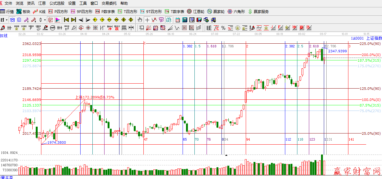 ☆依據(jù)贏家江恩系統(tǒng)黃金時間周期線提示:下一時間窗口是9月18日,9月25日。