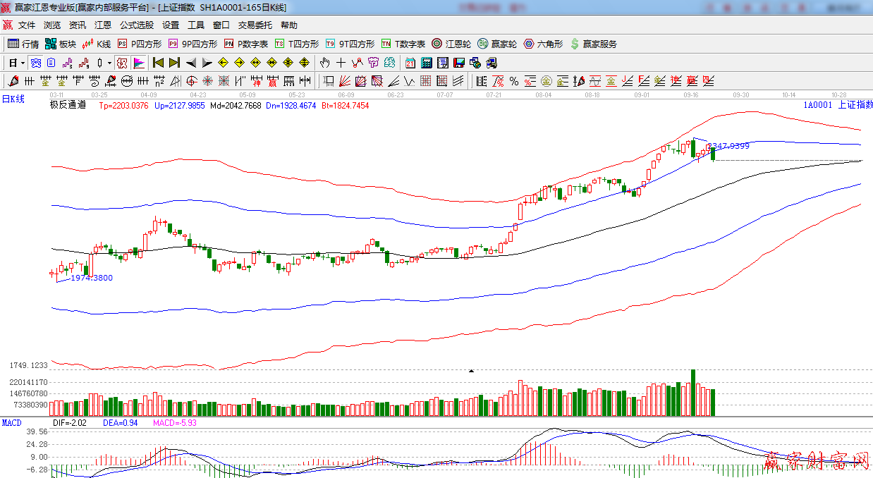盤面上,鋼鐵、保險、銀行、航空等權重股表現(xiàn)低迷,僅有港口自貿,旅游,油改小幅活躍,消息面,業(yè)內人士分析,本周新股發(fā)行凍結資金可能在6000億元以上,加之國慶大假等因素,A股資金面將面臨嚴峻的考驗,技術面,前期分析中提到的周五最后一小時選擇短線方向,今日如期應驗,至收盤形態(tài)上出現(xiàn)下降三法走勢,短期市場保持謹慎為主。